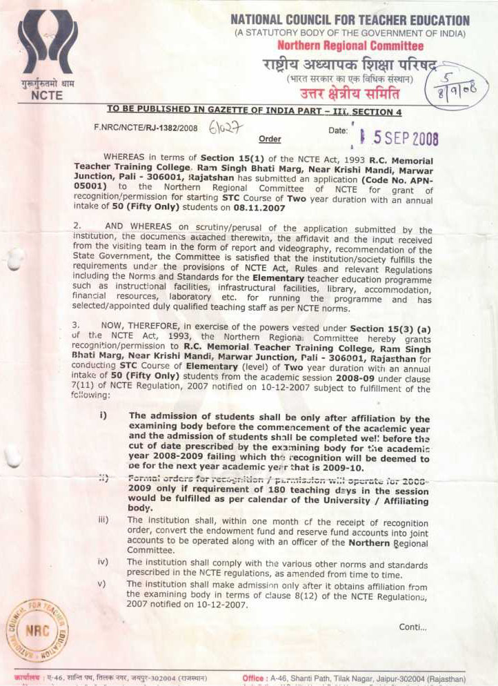 R. C. MEMORIAL T. T. COLLEGE